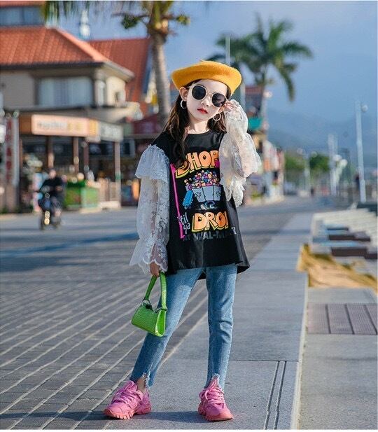 袖レースワンピース